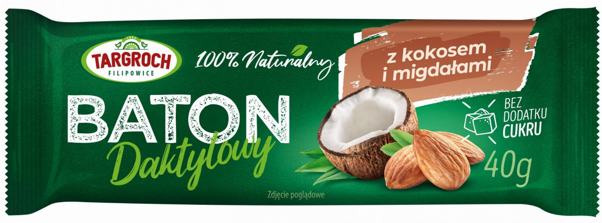 Zdrowy Baton Daktylowy z Kokosem i Migdałami Energia z Natury 40g TARGROCH