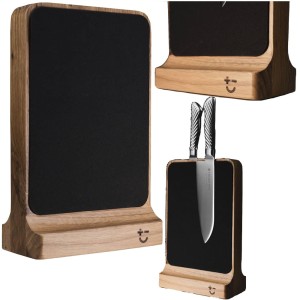 Opis: Blok marki Bisbell wykonany został z drewna dębu. Wyposażony w 8 magnesów po 4 na stronę pomieści nawet do 8 noży. Jest to produkt łatwy w użyciu i pozwala z łatwością dobrać noże dzięki ich pełnej widoczności. Neoprenowy materiał nałożony na drewno jest bardzo miękki oraz zapobiega rysowaniu się noży.