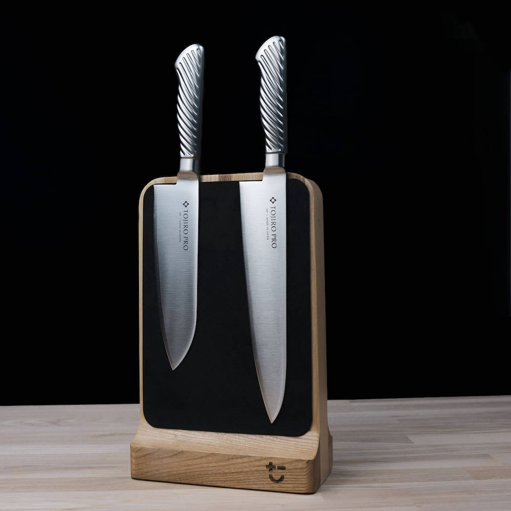 Opis: Blok marki Bisbell wykonany został z jesionu. Wyposażony w 8 magnesów po 4 na stronę pomieści nawet do 8 noży. Jest to produkt łatwy w użyciu i pozwala z łatwością dobrać noże dzięki ich pełnej widoczności. Neoprenowy materiał nałożony na drewno jest bardzo miękki oraz zapobiega rysowaniu się noży.