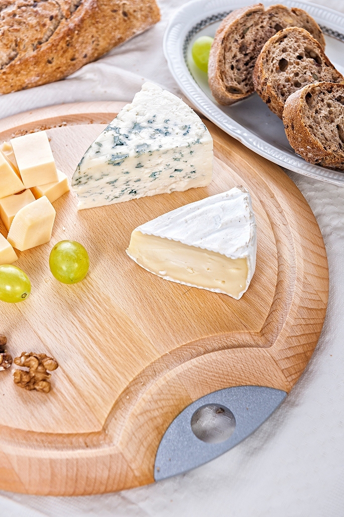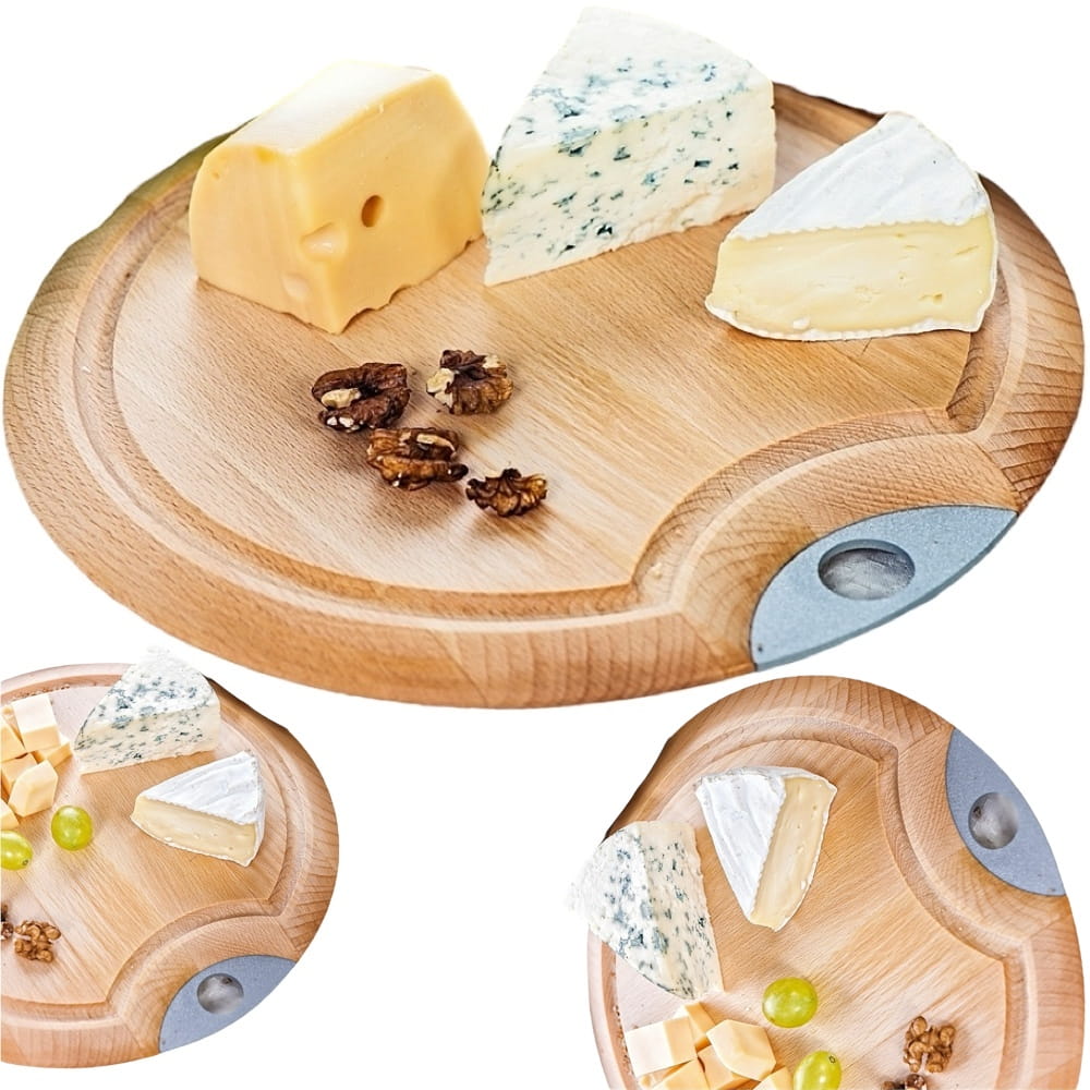 Opis: Poręczna deska do serów z jasnego, litego drewna, wyposażona w praktyczny uchwyt i estetycznie wykończona fazowanym obrzeżem. Jest łatwa w konserwacji, nie tępi noży i nadaje wnętrzom ciepły, pogodny charakter.