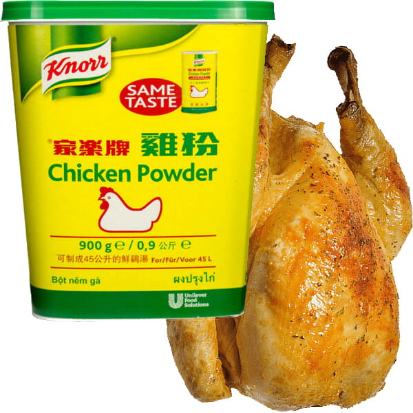 Opis: Bulion drobiowy w proszku w opakowaniu 900g firmy Knorr. Idealna mieszanka przypraw, która po wsypaniu do wrzątku zamienia go w bardzo dobry bulion drobiowy. Aby przygotować litr bulionu wystarczy dodać 2 łyżki proszku i dobrze wymieszać. Bazą wielu sosów oraz dań w kuchni orientalnej jest właśnie aromatyczny bulion drobiowy. Bulion ten jest przygotowany według tradycyjnego przepisu, który zawiera w sobie słodki aromat kurczaka. Idealny do zup, sosów, marynat i potraw stir-fry.