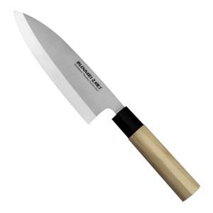 Opis: Deba to tradycyjny nóż japoński pełniący równocześnie funkcję noża do filetowania ryb lub drobiu, noża do porcjowania mięsa i wszechstronnego, lekkiego tasaka. Ostrzony jednostronnie, jest wystarczająco finezyjny, aby kroić produkty na cienkie plastry, i wystarczająco mocny, aby przecinać nieduże ości. Stosunkowo krótkie ostrze umożliwia pełną kontrolę nad narzędziem. Klasyczna rękojeść w stylu japońskim jest bardzo lekka i świetnie dopasowana do kształtu dłoni.