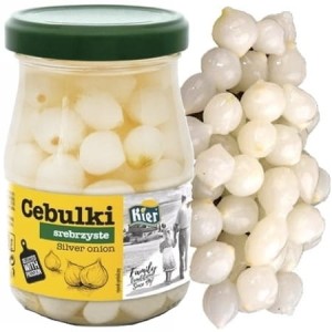 Opis: Cebulki marynowane białe srebrzyste w słoiku o pojemności 330g wyprodukowana przez firmę Kier. Najwyższa jakość, dzięki pakowaniu zaraz po zbiorach.