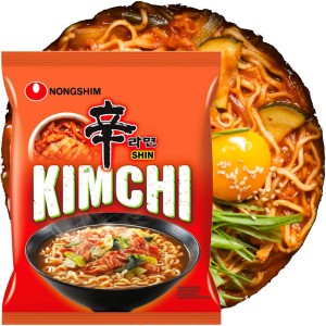Klasyczna ostra zupa koreańska z dodatkiem kimchi – fermentowanej kapusty o wyrazistym, lekko kwaśnym i pikantnym smaku. Połączenie sprężystego makaronu pszennego i bulionu pełnego przypraw tworzy wyjątkowo aromatyczne, sycące danie gotowe w kilka minut.
