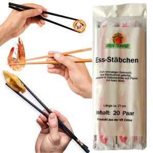 Opis: Chińskie pałeczki bambusowe 20 par o długości 21cm. Każda para zapakowana w papierowe etui z azjatyckimi motywami. Całość 20 par zapakowana w foliowe opakowanie. Pałeczki są jednorazowe, dzięki temu, czystość i higieniczność spożywania potraw będzie na wysokim poziomie.