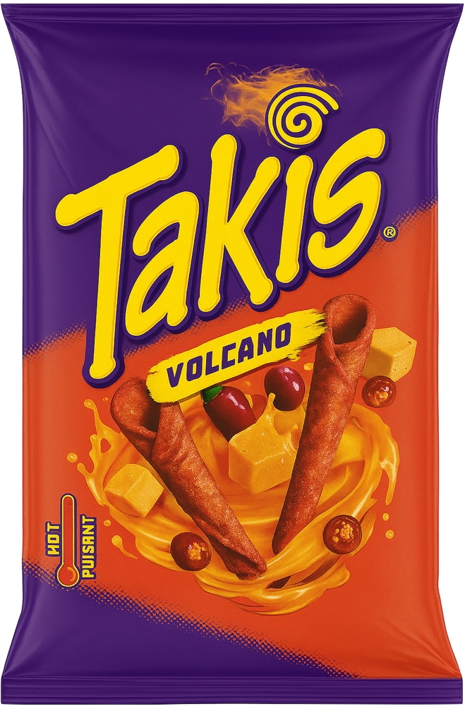 Opis: Serowa lawina smaku w ognistej odsłonie! TAKIS Volcano to intensywnie chrupiące, skręcone chipsy tortilla, które łączą kremowy smak roztopionego sera z pikantnym akcentem chili. Idealne dla miłośników przekąsek, które rozgrzewają i uzależniają swoim aromatem.
