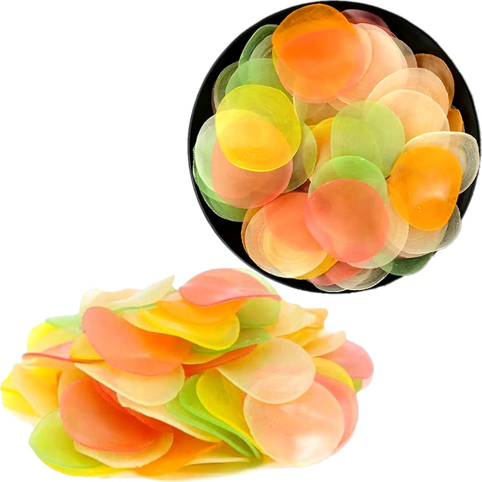 Opis: Chipsy prażynki krewetkowe KOLOROWE do smażenia w opakowaniu 200g. Chipsy krewetkowe to przekąska przygotowywana z krewetek lub krewetkowego miąższu, który jest suszony lub smażony, aby uzyskać chrupiącą konsystencję. Te chipsy są znane z intensywnego smaku krewetki, który jest często słony i lekko słodki. Są one popularne w wielu krajach, szczególnie w Azji, gdzie owoce morza stanowią ważną część kuchni.