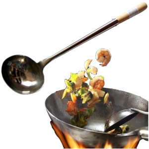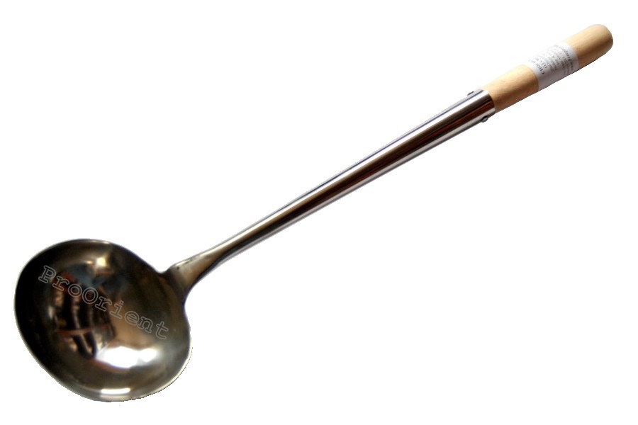 Opis: Chochla do woka o długości 45cm i szerokości 11cm to niezbędne narzędzie chińskiego kucharza. W znaczny sposób ułatwia smażenie na patelni wok metodą stir-fry. Duża powierzchnia chochli pozwala na łatwe smażenie składników i przenoszenie potrawy z woka na talerz. W naszym asortymencie posiadamy również łopatkę do woka, która pełni podobną funkcje.