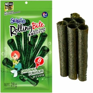 Opis: Chrupiące glony wodorosty nori original przekąska roll w opakowaniu 28g firmy SELECO. Klasyczna chrupiąca przekąska o oryginalnym smaku wodorostów bez dodatków w zawiniętej formie rureczek. Oryginalny smak charakterystyczny dla azjatyckich przekąsek, bardzo rzadko spotykanych w tradycyjnych sklepach.