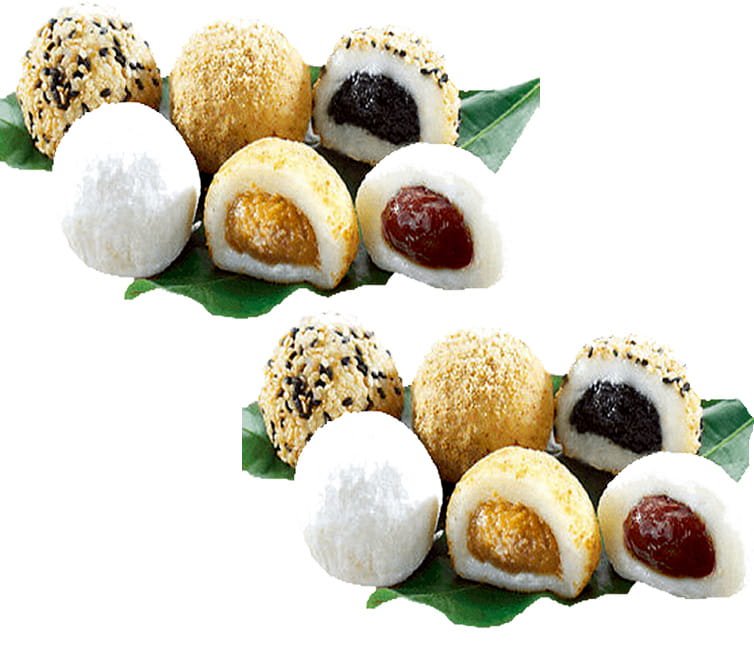 Składniki: Sezamowe ciasto ryżowe: maltoza, pasta sezamowa 20% (sezam 53,2%, orzechy ziemne, fasola azuki, cukier, glukoza, emulgator: E471; olej sojowy, aromat, sól), ryż kleisty w proszku 15,2%, cukier, sezam 3%, woda, substancja konserwująca: E200; emulgator: E471; substancja zagęszczająca: E415.