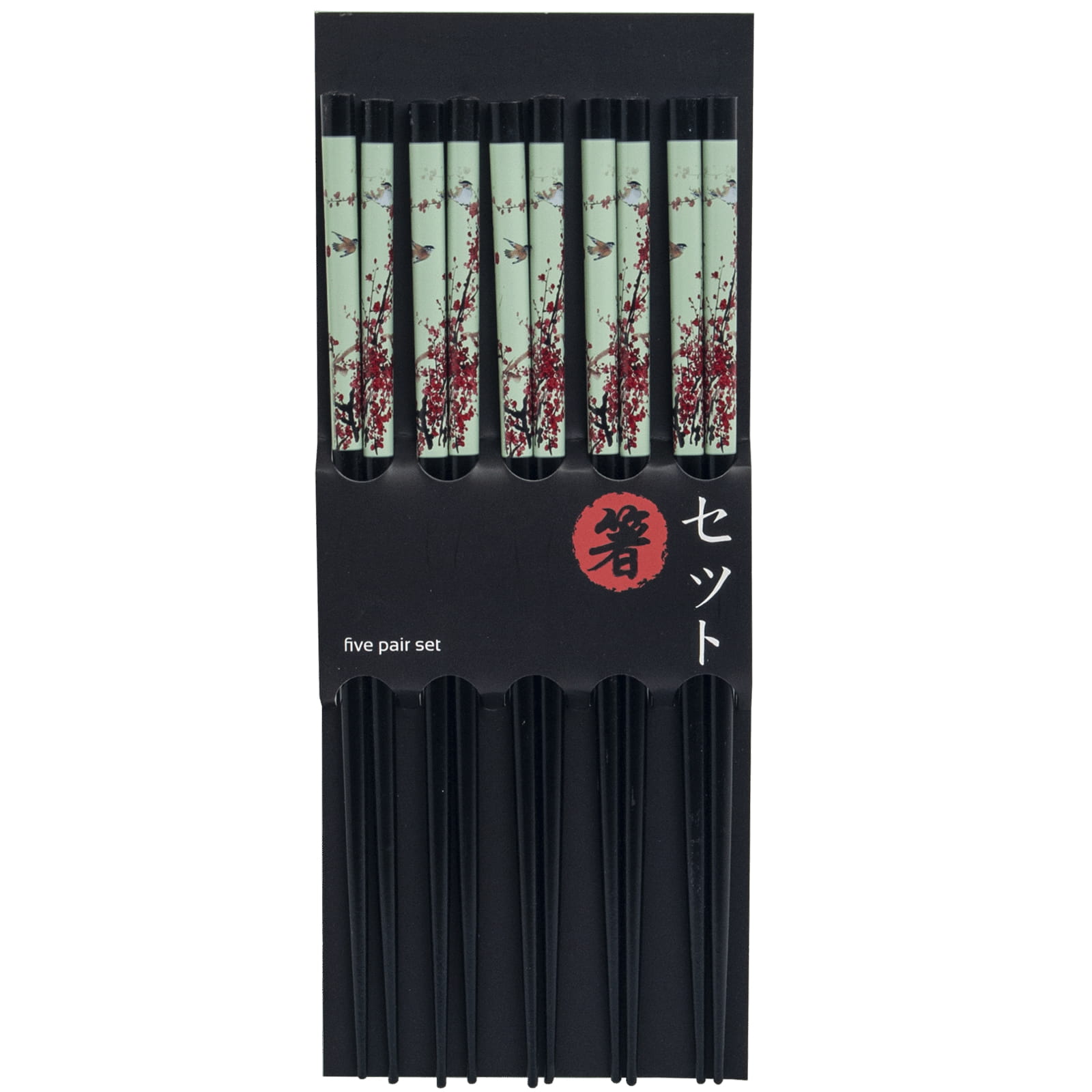 Czarne Drewniane Pałeczki z Motywem Kwiatów i Ptaków 5 Par 22,5cm EMRO AZIATICA