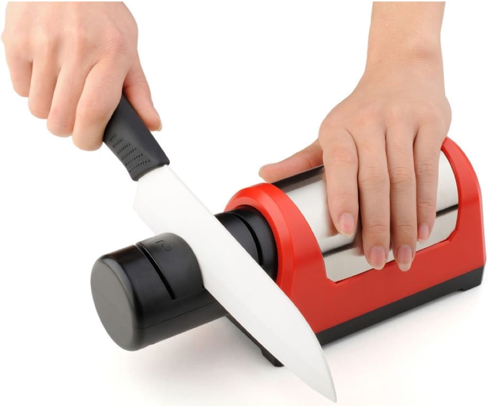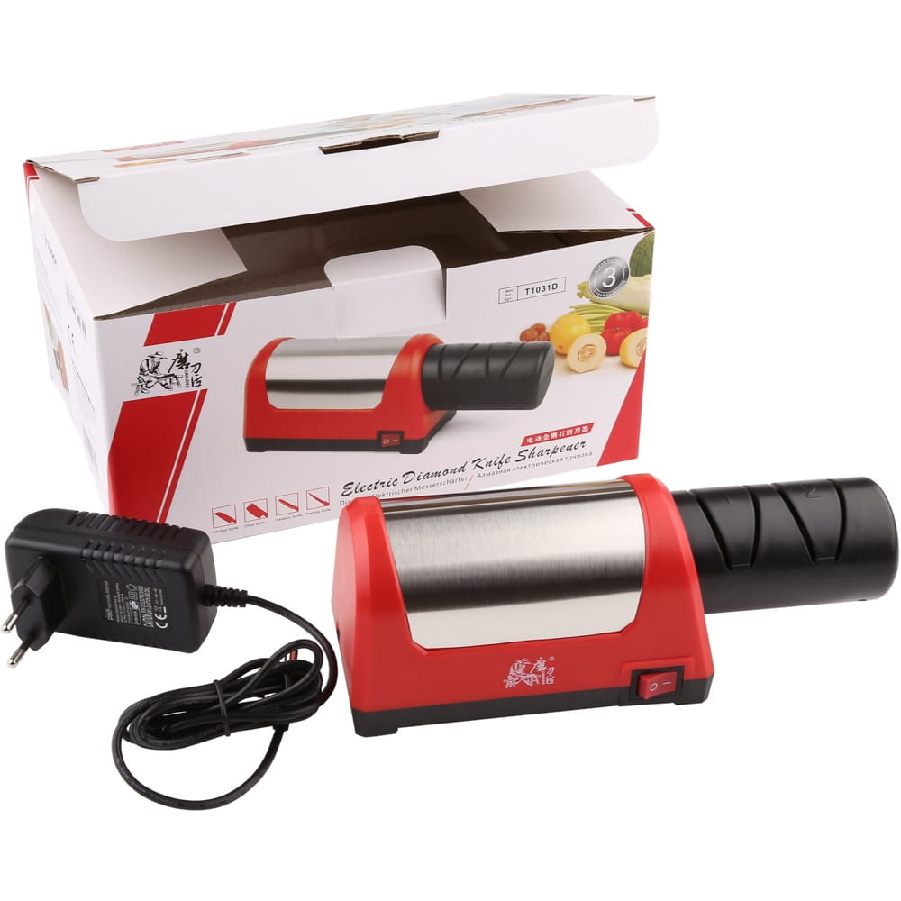 Opis: Elektryczna diamentowa ostrzałka do noży TG1031. Elektryczna diamentowa ostrzałka do noży w zaledwie kilka minut sprawi, że nawet bardzo tępy nóż odzyska dawną ostrość. Precyzyjne, wymuszone ustawienie kąta ostrzenia i stała siła nacisku zapewniają profesjonalny rezultat za każdym razem. Diamentowe i ceramiczne ściernice gwarantują wysoką jakość ostrzenia. Możliwość demontażu bloku ostrzącego pozwala na łatwe mycie i w razie potrzeby - jego wymianę. Ta ostrzałka, to idealne narzędzie do ostrzenia wszystkich rodzajów noży - zarówno metalowych jak i ceramicznych.