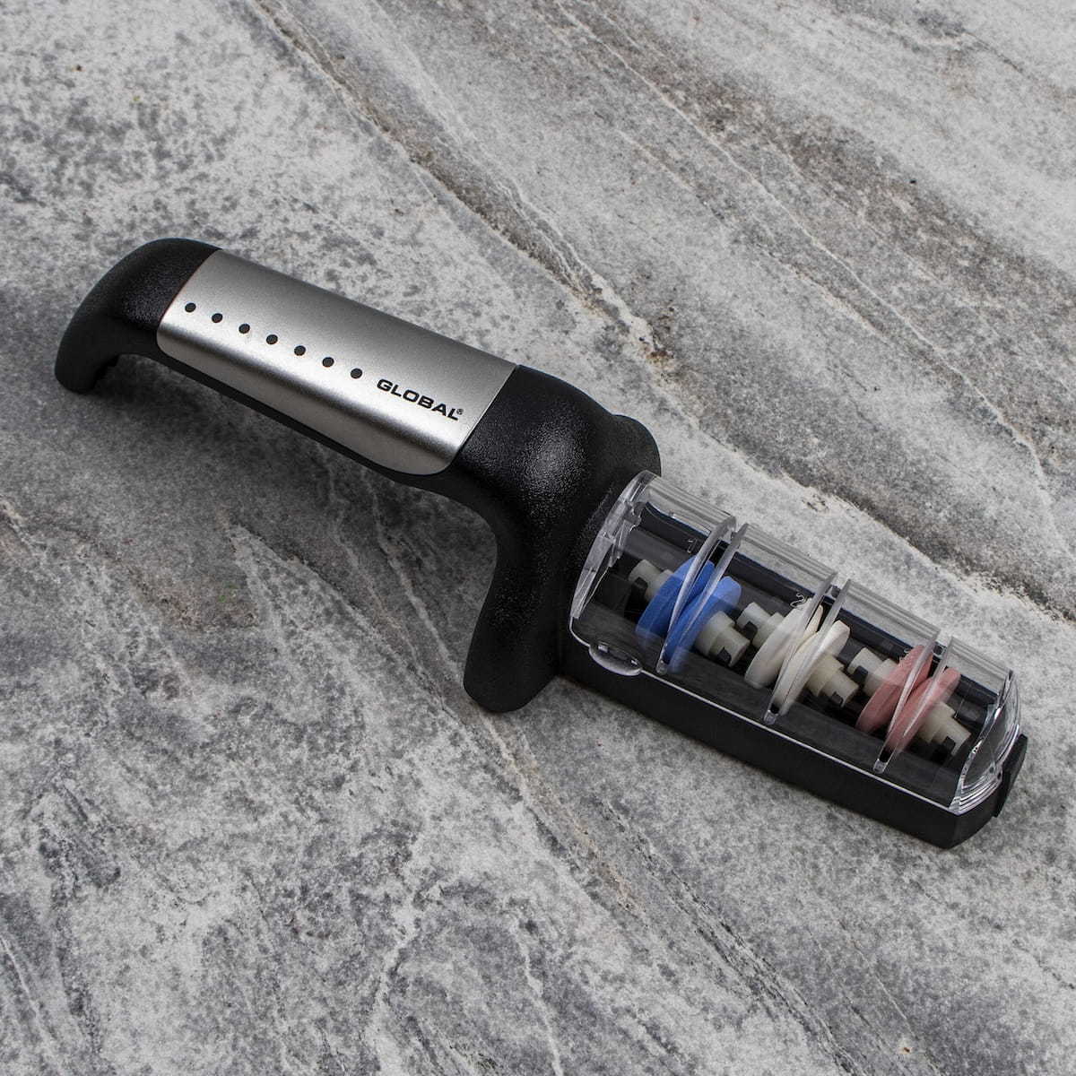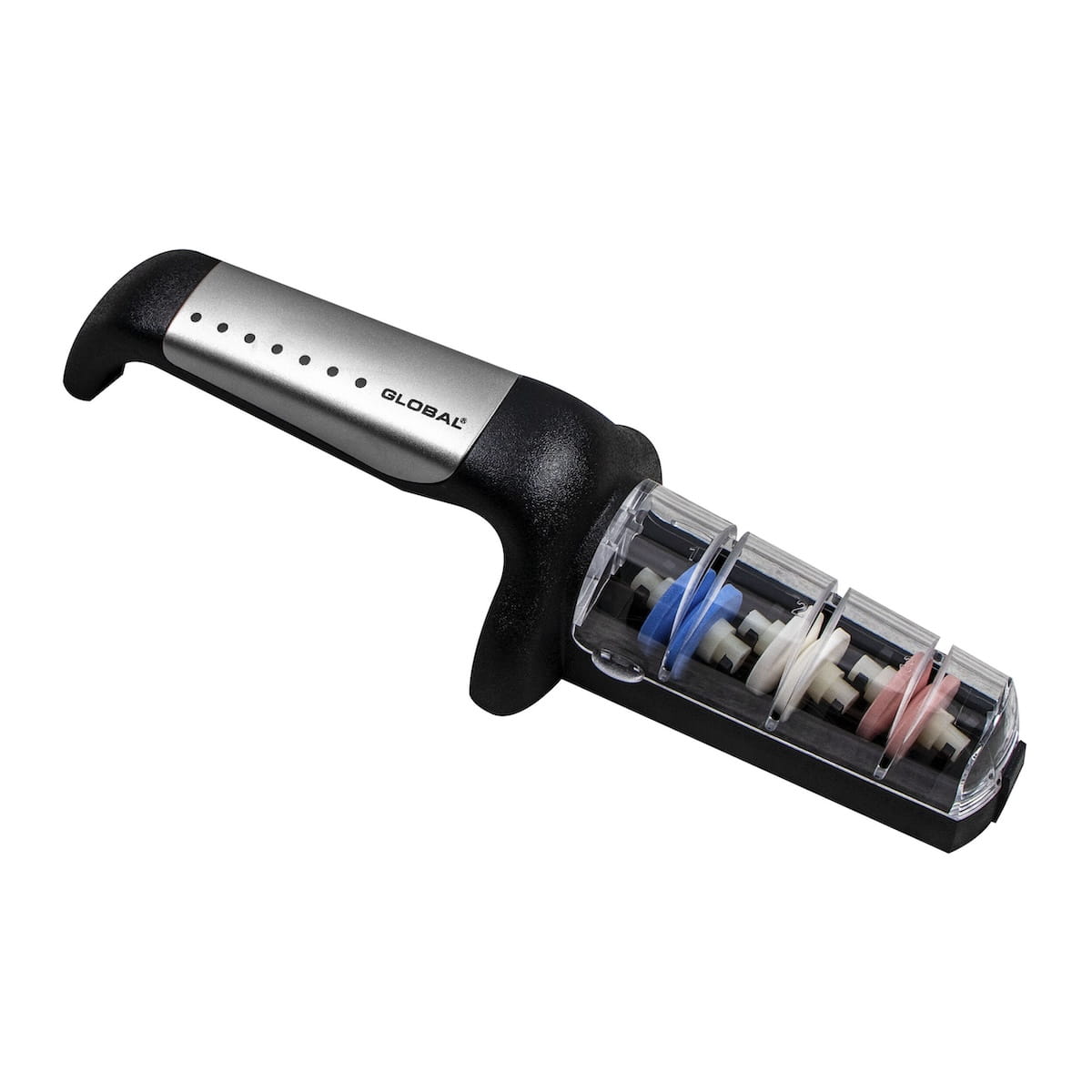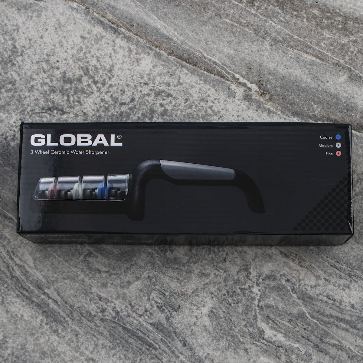 Global Japońska Ceramiczna Ostrzałka Wodna 3 Fazowa Do Ostrzenia Noży Stalowo-Czarna G-913/SB
