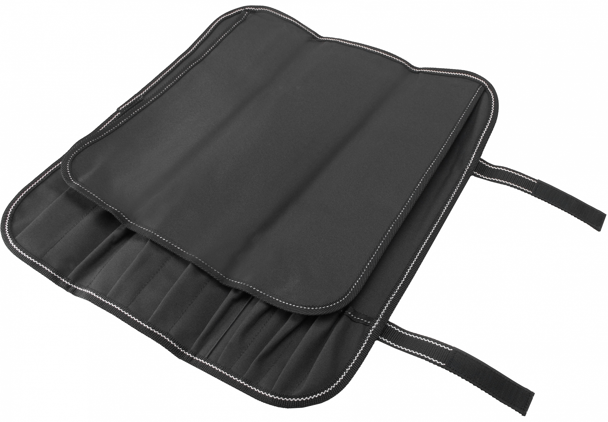 Opis: Poręczne, zwijane etui z solidnego, czarnego nylonu, w którym można bezpiecznie przenosić noże Global, a także je przechowywać. Torba jest zapina się na rzepy i posiada dziewięć kieszeni różnej wielkości. Umieszczone w niej noże nie ocierają się o siebie, co przedłuża żywotność ostrzy i chroni je przed stępieniem.