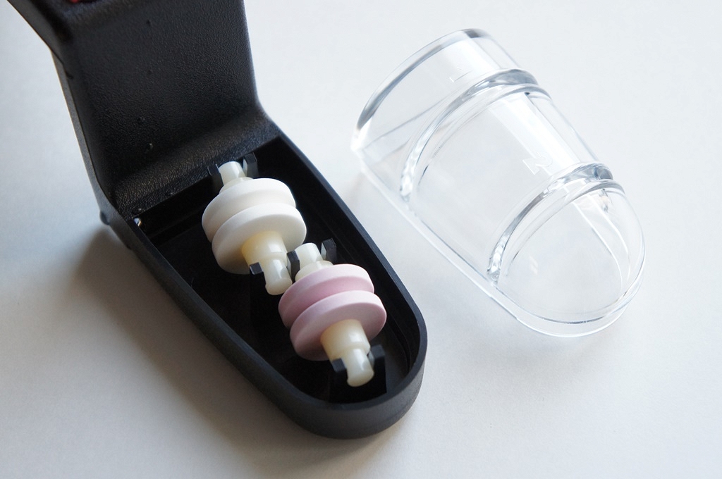 - dwa ceramiczne kółka ostrzące (grube i średnie) – pozwalają na skuteczne ostrzenie w dwóch etapach