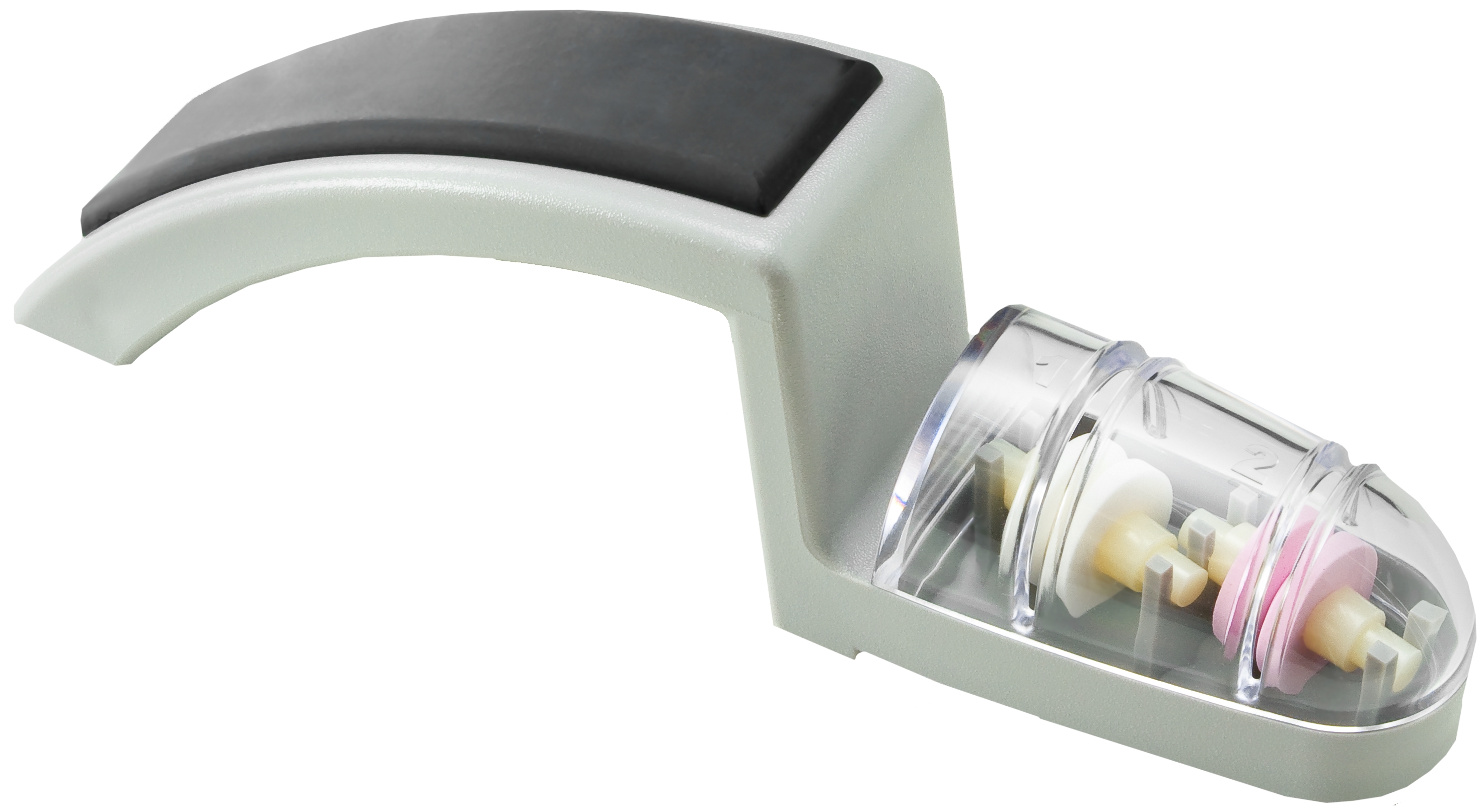 Opis: Dwufazowa ostrzałka ceramiczna, zaprojektowana specjalnie dla noży Global i przeznaczona do ostrzenia wszystkich rodzajów noży, z wyjątkiem tych o szlifach jednostronnych, np. tradycyjnych noży japońskich. Dzięki wodzie proces ostrzenia przebiega szybciej, a fabrycznie ustawione otwory ułatwiają naostrzenie noża pod odpowiednim kątem. Gumowany uchwyt i podstawa mają właściwości przeciwpoślizgowe.