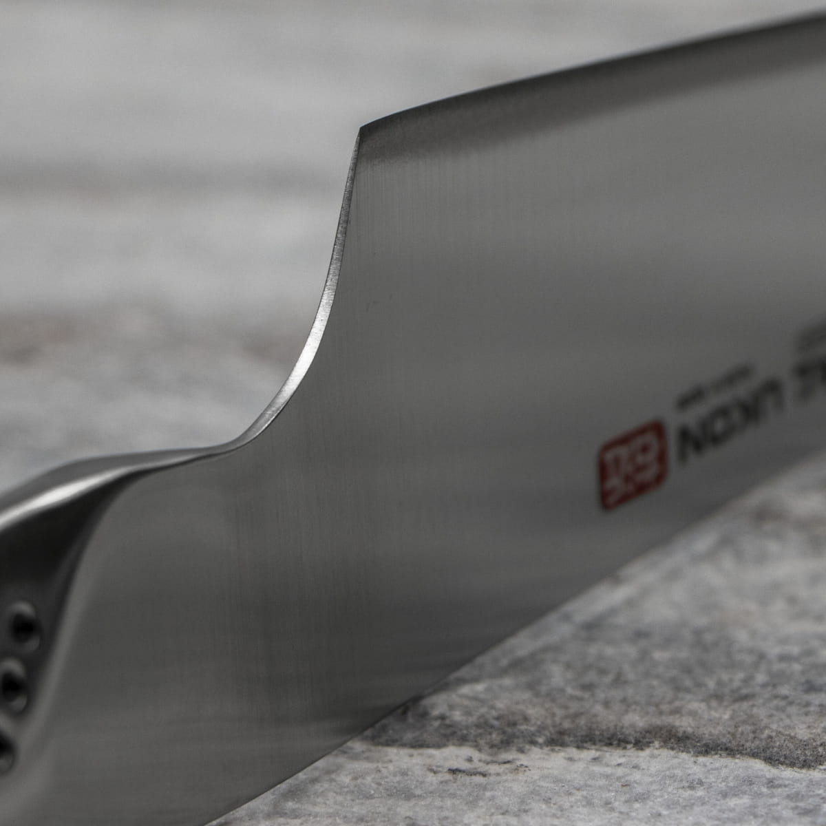 Opis: Klasyczny nóż do porcjowania, dzięki któremu można schludnie pokroić duże porcje mięsa na plastry lub mniejsze kawałki, a także oddzielić mięso od kości. Idealnie się sprawdza przy serwowaniu kruchego indyka, pieczonej szynki czy jagnięciny. Najlepiej przytrzymać mięso specjalnym widelcem do porcjowania i kroić je w poprzek włókien.