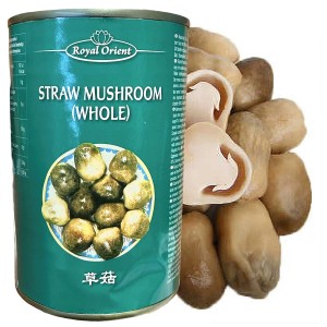 Opis: Grzyby słomiane w puszce o pojemności 425g, wyprodukowane w chinach. Do potraw dodawane w całości, wtedy zachowują aromat i podnoszą walory smakowe. "Grzyby Słomiane" to polska nazwa na "straw mushrooms" w języku angielskim. Są to małe grzyby o mięsistym kapeluszu i cienkiej, długiej łodydze. Nazwa "Słomiane" pochodzi od tradycji opakowywania tych grzybów w suchą słomę w Azji Wschodniej.