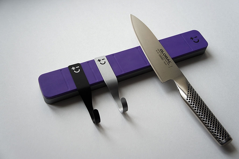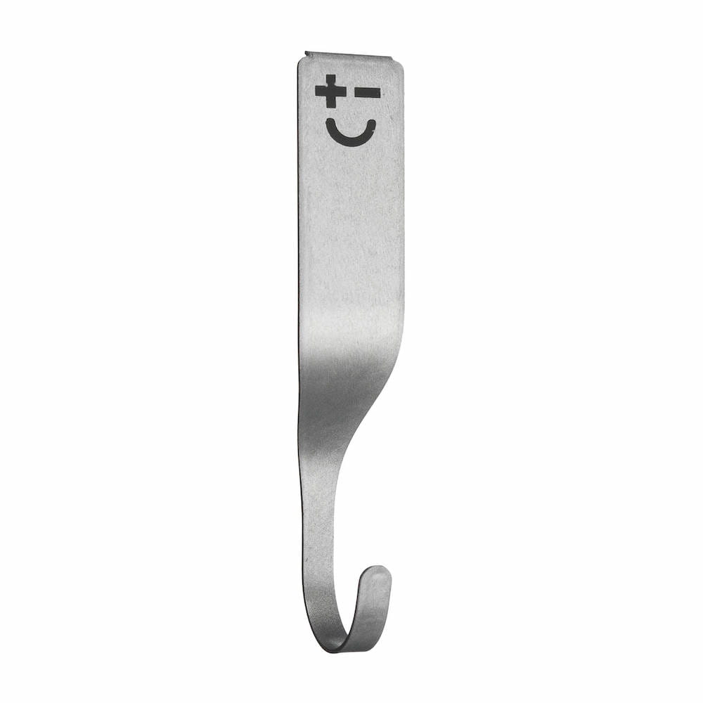 Opis: Haczyk z solidnego metalu, mocowany do listwy magnetycznej na noże. Pozwala zawiesić np. rękawicę, szpatułkę, nożyce kuchenne, ręcznik, klucze czy kubek. Doskonały dodatek, który zwiększa praktyczność magnetycznej listwy na noże Bisbell.