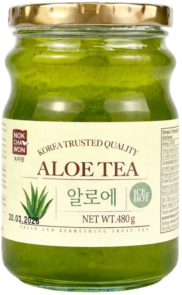 Herbata koreańska aloesowa od NOKCHAWON to wyjątkowy napój o delikatnym, świeżym smaku aloesu, który doskonale sprawdzi się zarówno na ciepło, jak i na zimno. Przygotowana z wysokiej jakości składników, zachwyca lekkim, naturalnym aromatem oraz przyjemnym uczuciem orzeźwienia. To idealna propozycja na każdą porę roku – jako rozgrzewający napój zimą lub chłodząca herbata w letnie dni.