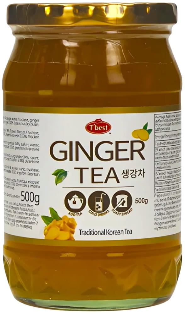 Opis: Herbata Koreańska Imbirowa Orzeźwiająca Ice And Hot 500g marki T'BEST to wyjątkowy produkt o konsystencji przypominającej gęstą konfiturę lub galaretkę, łączący słodycz miodu z pikantnym smakiem imbiru. Jest to popularny napój w Korei, ceniony nie tylko za swój smak, ale także za właściwości prozdrowotne. Imbir działa rozgrzewająco, przeciwzapalnie oraz wspomaga trawienie, co czyni tę herbatę naturalnym środkiem wspierającym odporność i pomagającym w walce z przeziębieniem czy grypą.
