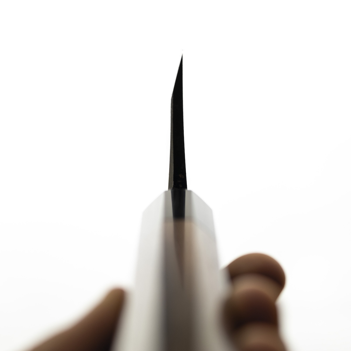 Ostrze wykonano z wysokiej jakości rdzewnej stali węglowej Shirogami #2, okutej żelazem. Hartowanie do poziomu 61–62 HRC gwarantuje wybitną ostrość, doskonałą kontrolę oraz łatwość ostrzenia, cenioną przez profesjonalnych kucharzy. Ze względu na właściwości stali węglowej zaleca się odpowiednią pielęgnację – po pracy nóż należy osuszyć, a do zabezpieczenia przed wilgocią warto stosować olejek kameliowy.