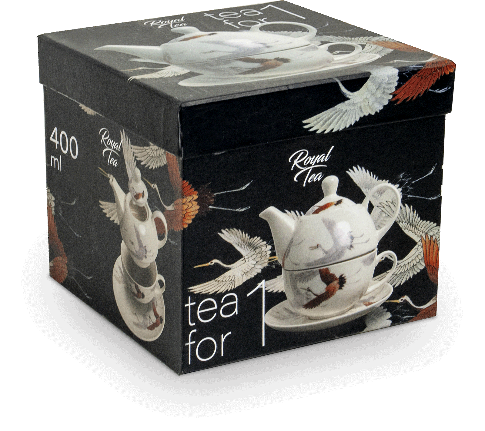 Japoński Biały Zestaw Do Herbaty Dla Jednej Osoby TEA FOR ONE Motyw Żuraw 400ml ROYAL TEA