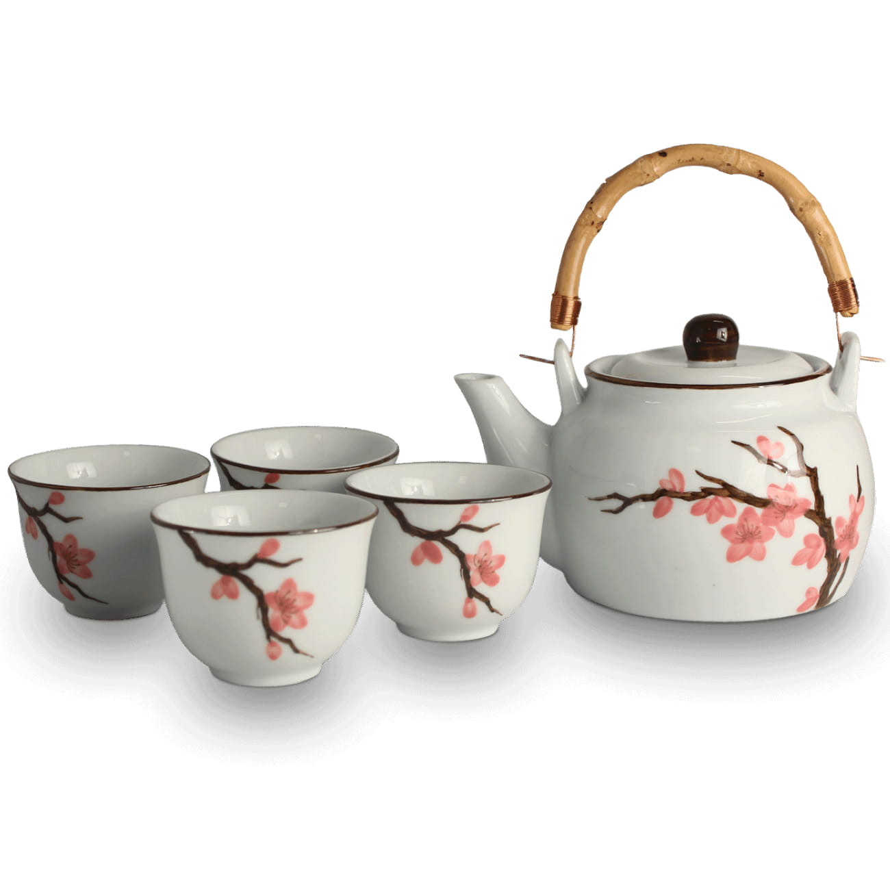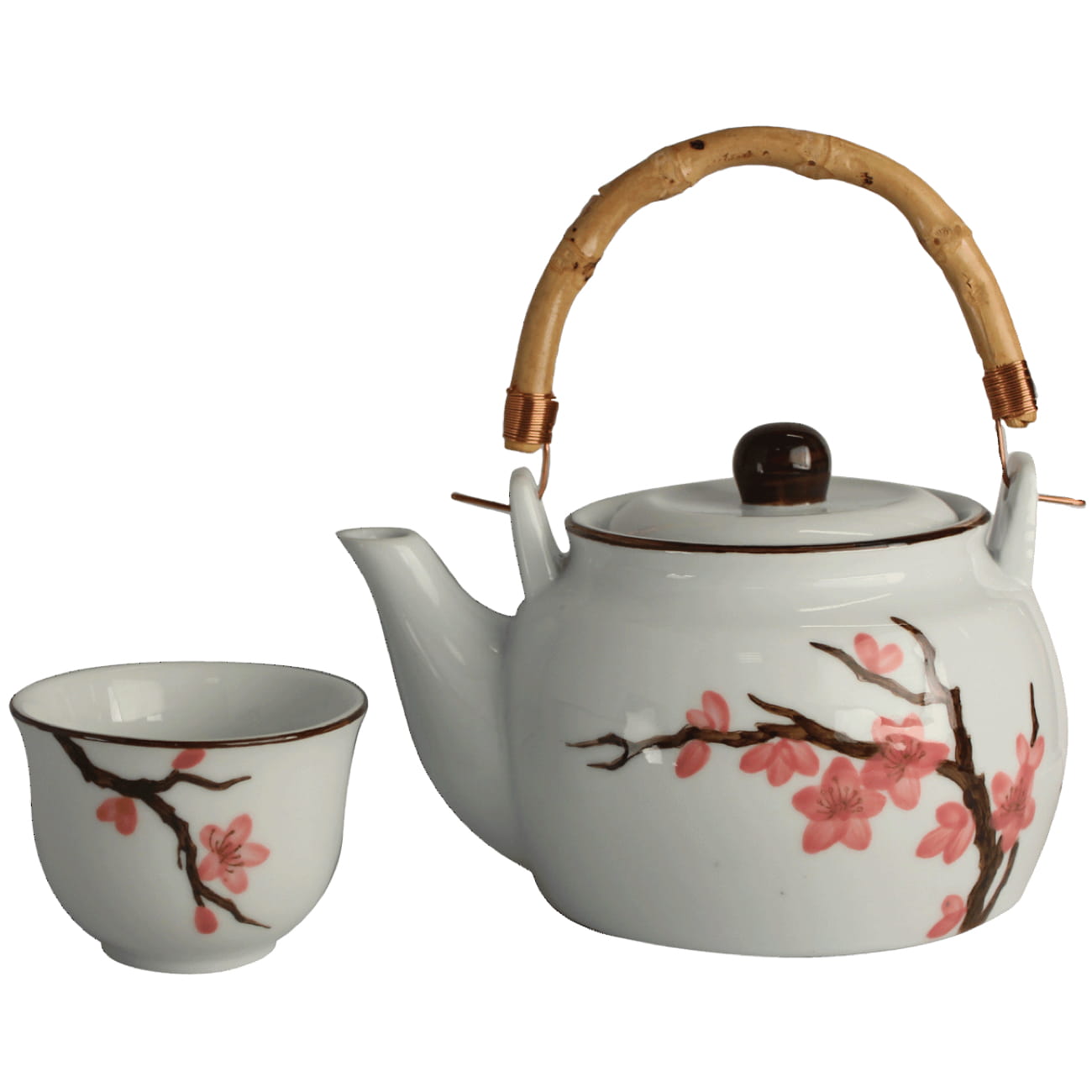 Japoński Elegancki Porcelanowy Biały Zestaw Do Herbaty Sakura 5 Elementów Dzbanek 800ml EMRO AZIATICA