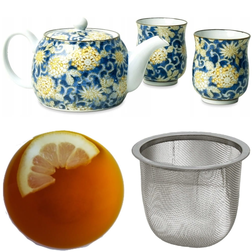 Opis: Japoński bardzo elegancki zestaw do serwowania herbaty z niebiesko żółtym kwiatowym wzorem firmy EMRO AZIATICA. W skład zestawu wchodzi dzbanek z sitkiem do herbaty liściastej o pojemności około 500-600ml oraz dwie czarki do picia herbaty. Wyprodukowany został z wysokiej jakości porcelany w Japonii, co zapewnia długotrwałe użytkowanie. Idealny do spożywania orientalnej herbaty w niesamowitej atmosferze z rodziną oraz przyjaciółmi.