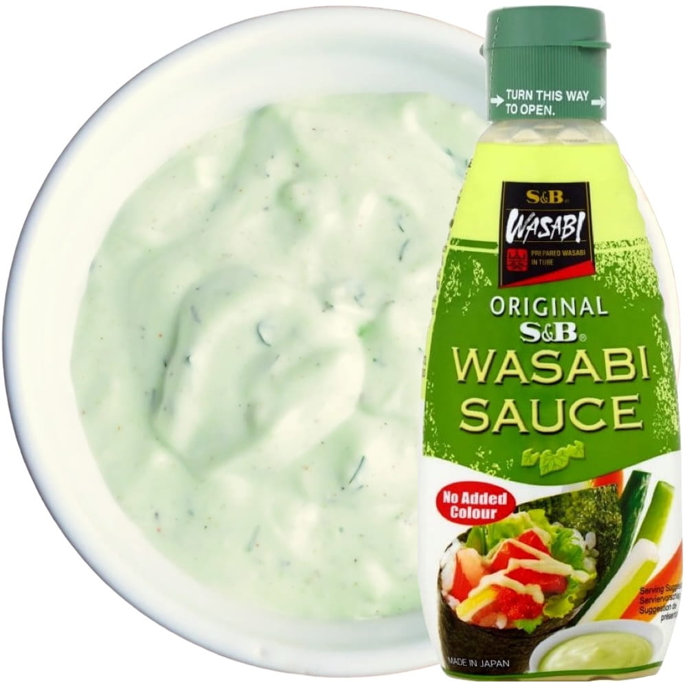 Składniki: Woda, olej słonecznikowy, cukier, skrobia, sól, dekstryna, chrzan japoński 1.5%, aromat (zawiera gorczycę), wasabi 0.3%, substancja zagęszczająca: guma ksantanowa (soja), emulgator: estry sacharozy i kwasów tłuszczowych, kwas: kwas cytrynowy.