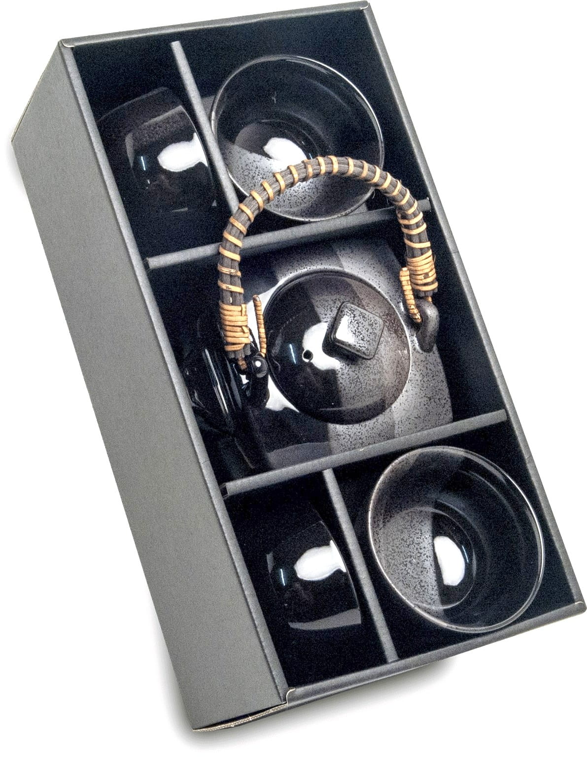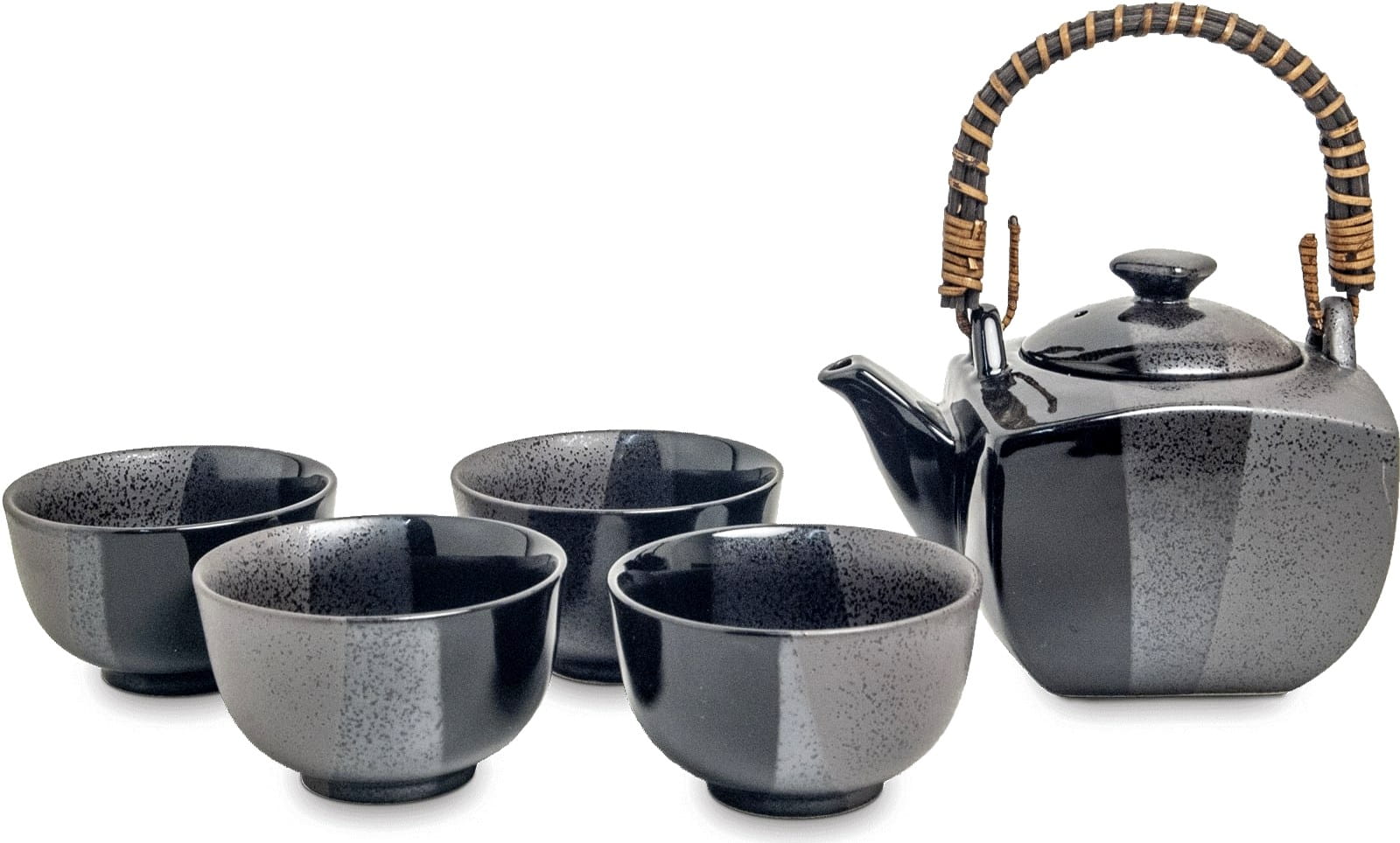 Opis: Japoński szaro czarny zestaw do serwowania herbaty firmy EMRO AZIATICA. W skład zestawu wchodzi dzbanek z sitkiem do herbaty liściastej o pojemności 600ml oraz cztery czarki. Wyprodukowany został z wysokiej jakości porcelany w Japonii, co zapewnia długotrwałe użytkowanie. Idealny do spożywania orientalnej herbaty w niesamowitej atmosferze z rodziną oraz przyjaciółmi.