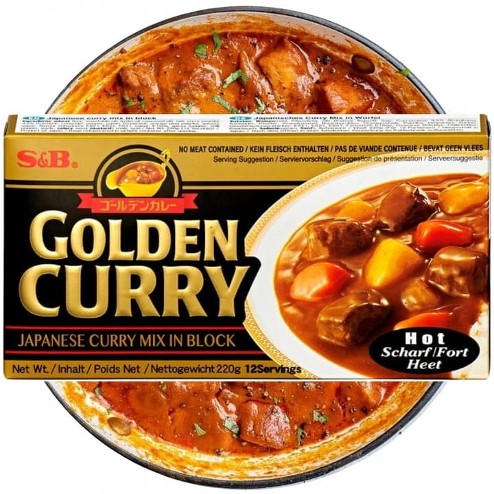 Opis: Japońskie golden curry HOT Ostre 12 porcji w dużym opakowaniu 220g japońskiej firmy S&B. Skosztuj wyjątkowych smaków japońskiego curry, korzystając z S&B Golden Curry. To danie trafiło do Japonii w okresie ery Meiji pod wpływem brytyjskich wpływów i od tamtego czasu Japończycy nieustannie doskonalili jego smak. Współczesne japońskie curry różni się od indyjskiego, mając słodszy i łagodniejszy smak oraz unikalny aromat. W opakowaniu znajdziesz wygodne kostki curry, które pozwalają szybko przygotować pyszny, lekko słodki sos z delikatnym pikantnym akcentem.