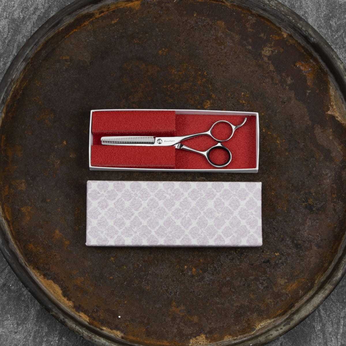 Opis: Nożyczki fryzjerskie japońskiej firmy Kanetsune są wykonane ze stali nierdzewnej AUS8. Pozwalają na wygodną pracę przy podcinaniu włosów. Ramiona połączone są śrubą, umożliwiającą rozłożenie nożyczek do czyszczenia lub ostrzenia.