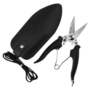 Opis: Mocne nożyczki z grubymi ostrzami idealnie nadają się do użytku na zewnątrz, takie jak cięcie gałęzi na opał czy lin. Dzięki ostrym końcówkom, nożyczki można łatwo wprowadzić w wąskie przestrzenie, a płynne działanie sprężyny oraz możliwość odblokowania jedną ręką sprawiają, że są bardzo wygodne w użytkowaniu. Nożyczki są wyposażone w przydatny pierścień na końcu uchwytu oraz skórzane etui z pętlą na pasek i zapięciem. Dołączony sznurek umożliwia zawieszenie ich na szyi lub zabezpieczenie wokół nadgarstka, co zapobiega przypadkowemu upuszczeniu.