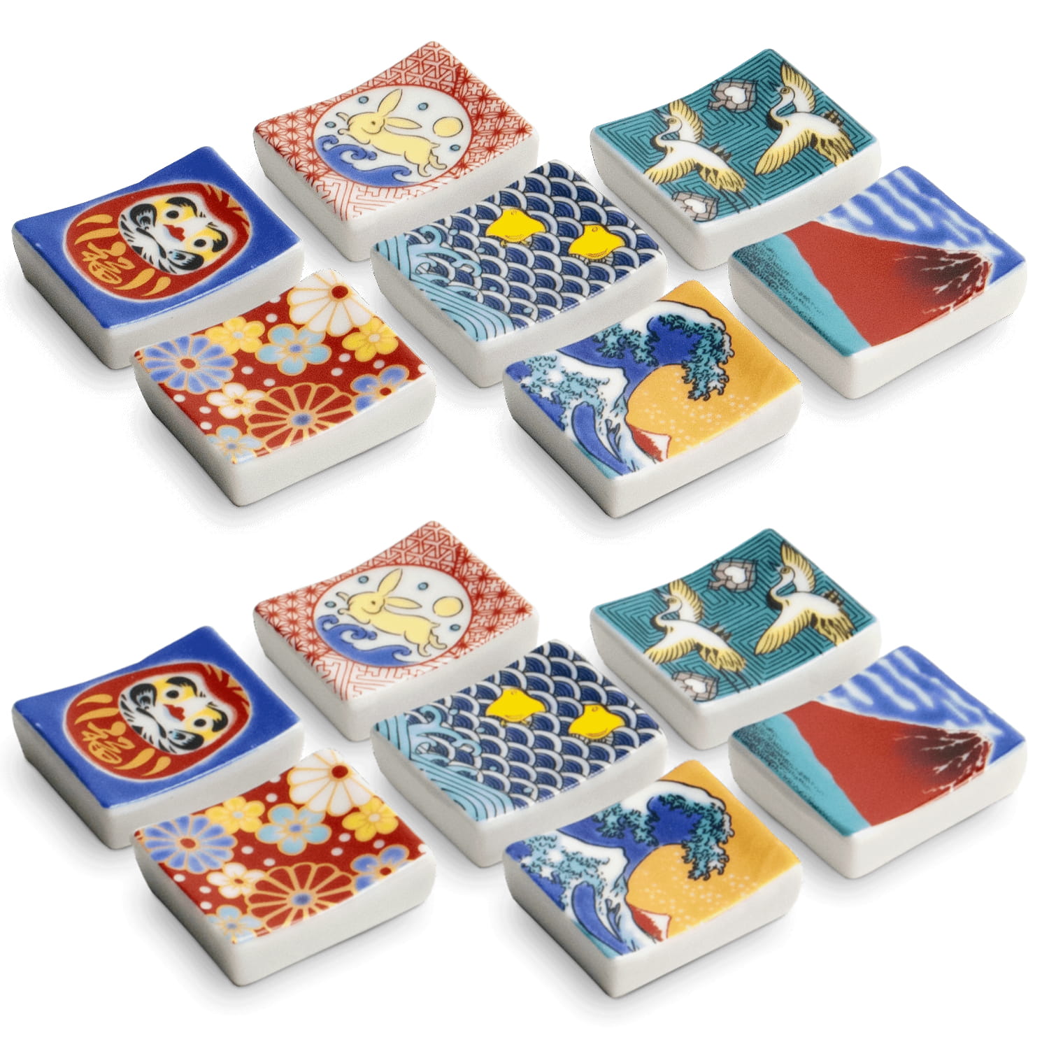 Kolorowa Prostokątna Podstawka Na Pałeczki 4 x 3,5cm z Różnymi Wzorami EMRO AZIATICA