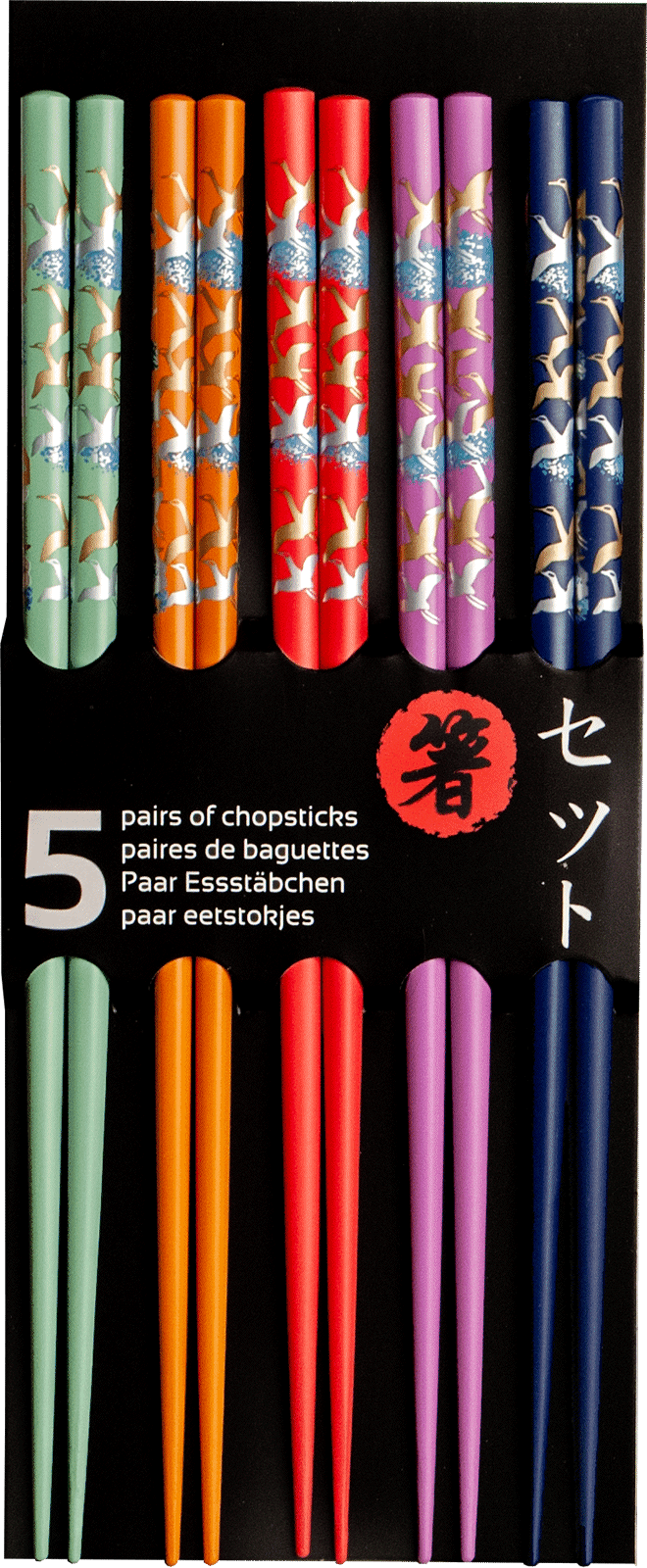 Opis: Kolorowe drewniane pałeczki z kolorowym motywem Żurawia. W opakowaniu znajduje się 5 par o długości 22,5cm. Pałeczki w japońskim stylu do wielokrotnego użytku, dzięki lakierowanej powłoce. Pałeczki zdecydowanie urozmaicą spożywanie orientalnych potraw, idealnie nadają się na prezent dla bliskiej osoby.