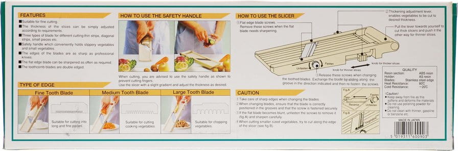 Ostrze krajalnicy jest niezwykle ostre i precyzyjne. Wyposażone w zaawansowaną japońską technologię tnącą, zapewnia idealne cięcie bez rozdzierania czy miażdżenia produktów. Dzięki temu Twoje warzywa i owoce zachowują świeżość, a ich kształt i struktura pozostają nienaruszone.