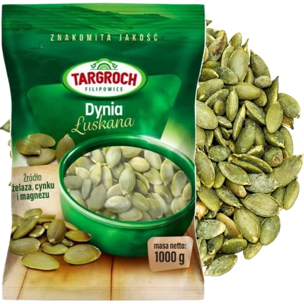 Łuskane Pestki Dyni Obrane 100% Naturalne Świeże Zdrowe Błonnik 1kg 1000g TARGROCH