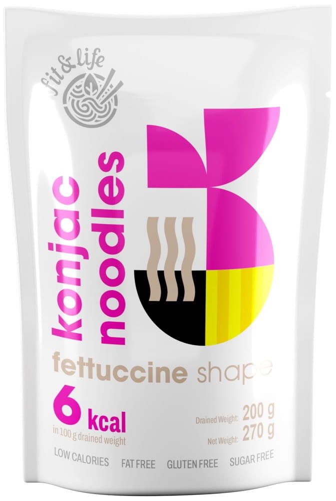 Opis: Sięgnij po zdrowszą alternatywę dla tradycyjnego makaronu! FIT & LIFE Shirataki Fettuccine to makaron w 100% bezglutenowy, niskokaloryczny i niemal pozbawiony węglowodanów. Wytwarzany z naturalnej mąki konjac, bogatej w błonnik glukomannan, idealnie wpisuje się w diety redukcyjne, keto, wegańskie i bezglutenowe.