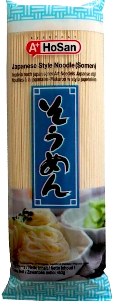Opis: Makaron pszenny somen koreańskiej w opakowaniu 453g firmy A+ Hosan. Jeden z najbardziej popularnych makaronów spożywanych w Japonii oraz Korei. Długi i cienki kształt powoduje, że idealnie nadaje się do zup lub dań na zimno.