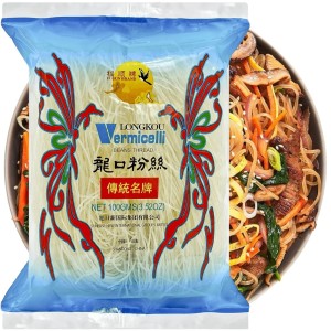 Delikatne, przeźroczyste nitki z fasoli mung, znane jako makaron szklany (vermicelli). Doskonały do zup, sajgonek, stir-fry i sałatek azjatyckich.