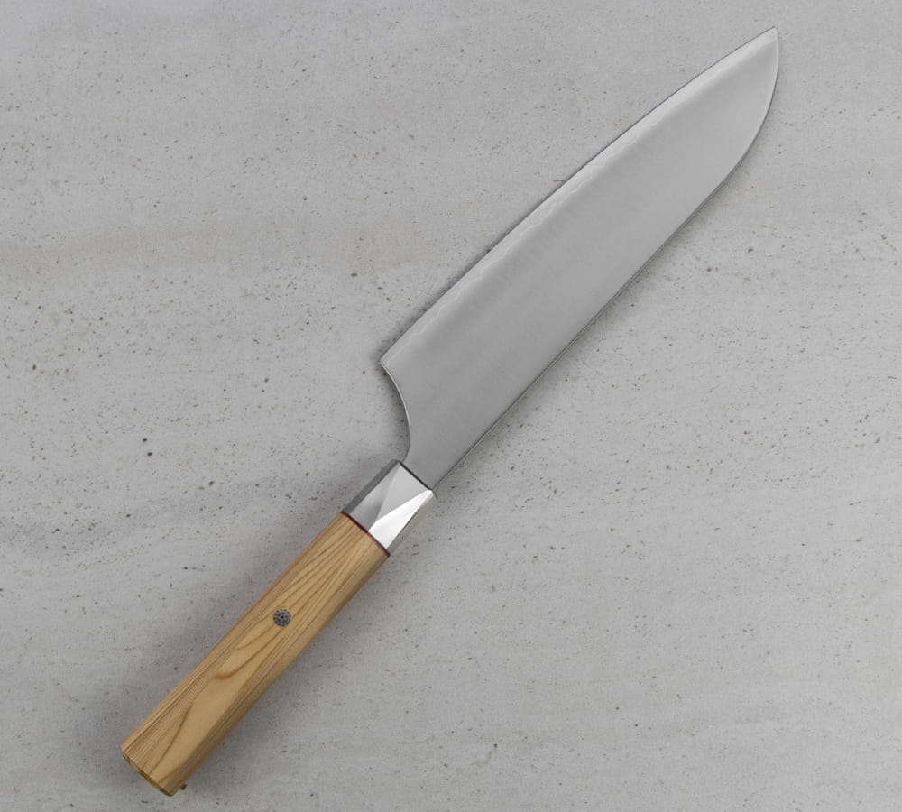 - stal Aogami Super 63 HRC – wysoka twardość, długotrwała ostrość i trwałość ostrza