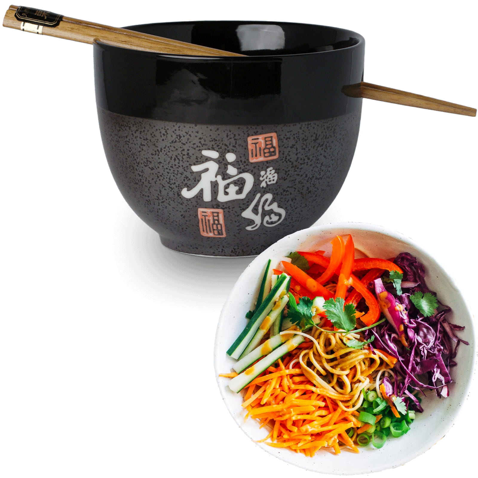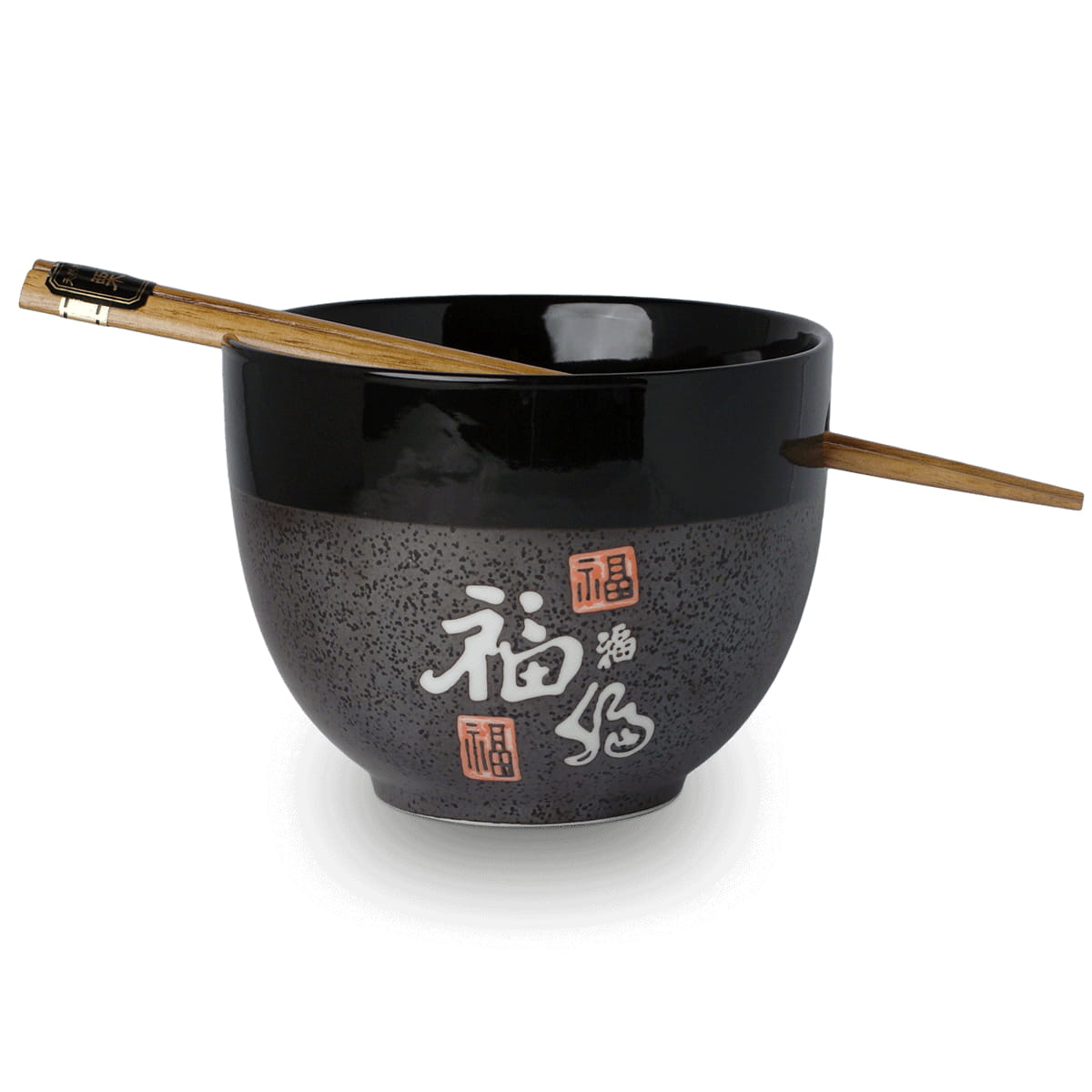 Miseczka z Pałeczkami Do Zupy i Makaronu Soba Czarno Szara Orientalne Znaki EMRO AZIATICA
