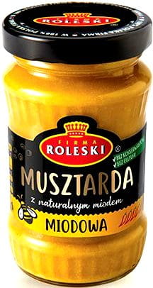 Opis: Musztarda z naturalnym miodem, bez konserwantów. Musztarda miodowa, to delikatna musztarda o subtelnym słodkim smaku z dodatkiem naturalnego, polskiego miodu gryczanego. Musztarda miodowa Roleski zachwyci nawet najbardziej wybrednych konsumentów. Uwielbiana przez najmłodszych konsumentów. Jej gładka i gęsta konsystencja sprawia, że sprawdza się idealnie jako dodatek do potraw z drobiu oraz jako składnik sosów i dressingów. Nie zawiera konserwantów, kwasu cytrynowego ani sztucznych barwników. Spróbuj! Polubisz. Roleski.