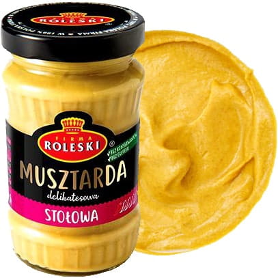 Opis: Uniwersalna, łagodna musztarda o gładkiej, kremowej konsystencji. Jej delikatny oraz harmonijny smak sprawia, że znajduje szerokie zastosowanie kulinarne zarówno do dan gotowych jak i również marynat. Nie zawiera konserwantów, sztucznych barwników ani wzmacniaczy smaku. Doskonała do mięs, wędlin, serów, dipów, dressingów czy popularnych sałatek, a także jako dodatek do kanapek. Spróbuj! Polubisz. Roleski.