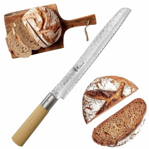 Opis: Specjalistyczny nóż kuchenny, który służy do cięcia różnego rodzaju pieczywa. Dzięki bardzo ostrej, ząbkowanej krawędzi tnącej doskonale sobie poradzi ze świeżymi, chrupiącymi wypiekami. Młotkowana powierzchnia zapobiega przywieraniu pieczywa i pozwala je ciąć na równe kromki, bez zgniatania delikatnego miąższu bułek czy chleba.