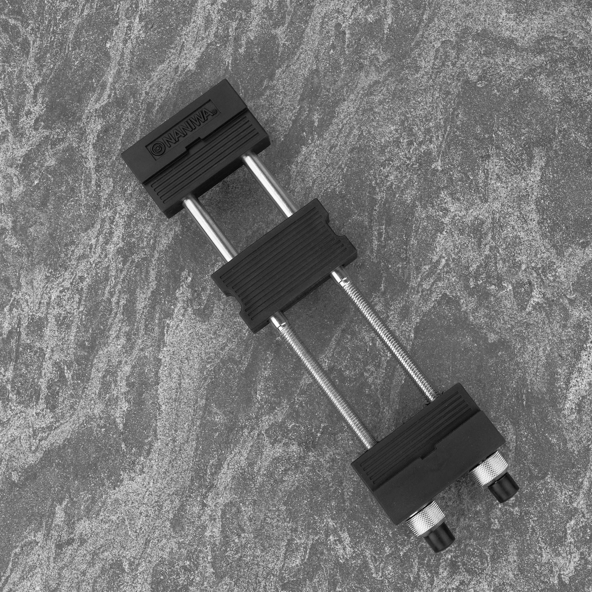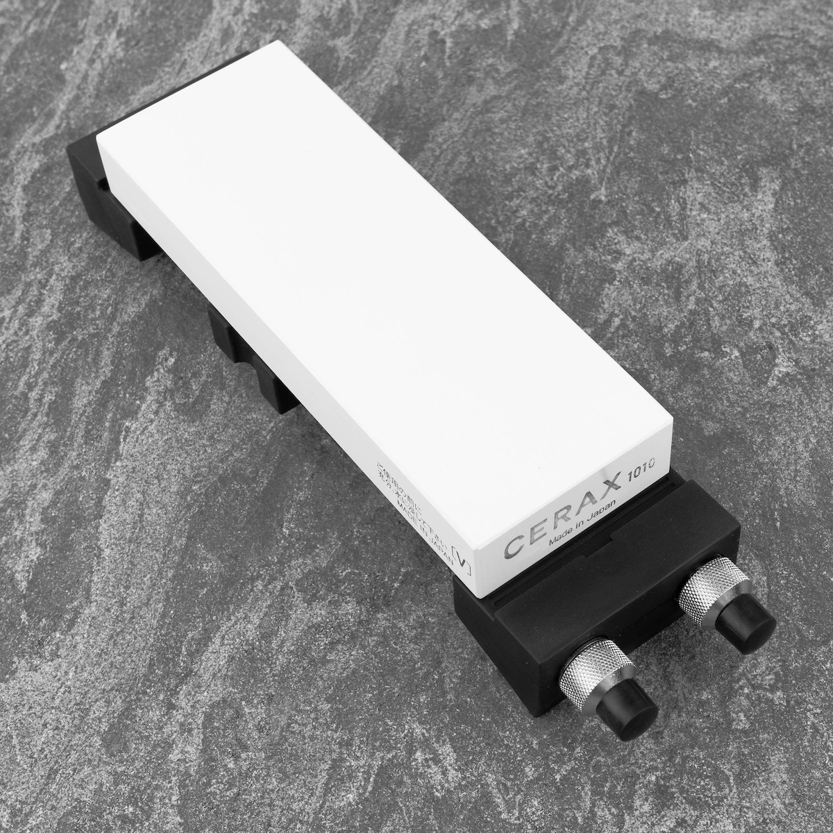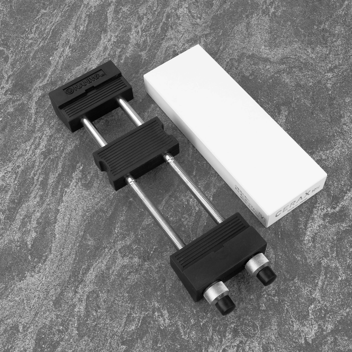 Model A-902 wyposażony jest w gumowe końcówki, które gwarantują doskonałą przyczepność do podłoża i chronią kamień przed poślizgiem oraz uszkodzeniem. Regulowana konstrukcja umożliwia dopasowanie uchwytu do kamieni o długości do 22 cm, dzięki czemu jest on kompatybilny z większością standardowych kamieni wodnych używanych do ostrzenia noży japońskich i zachodnich.