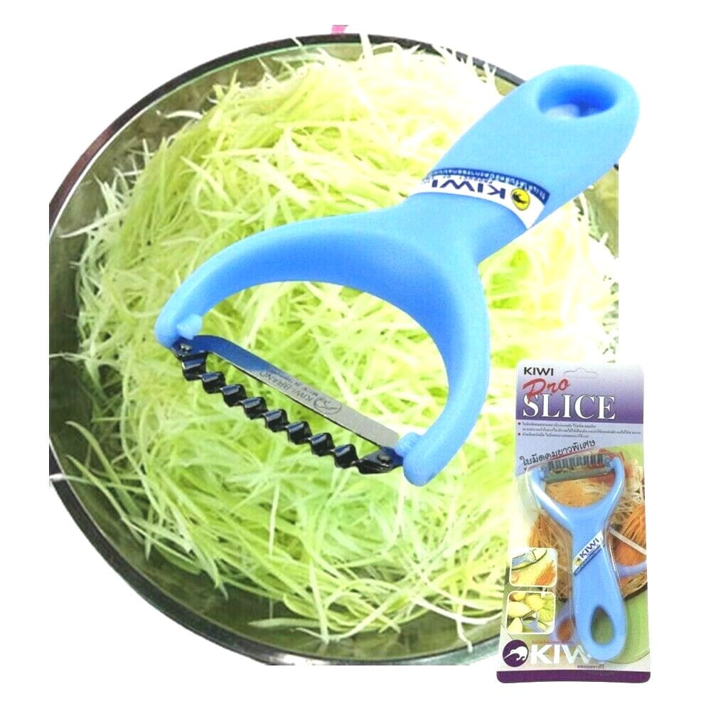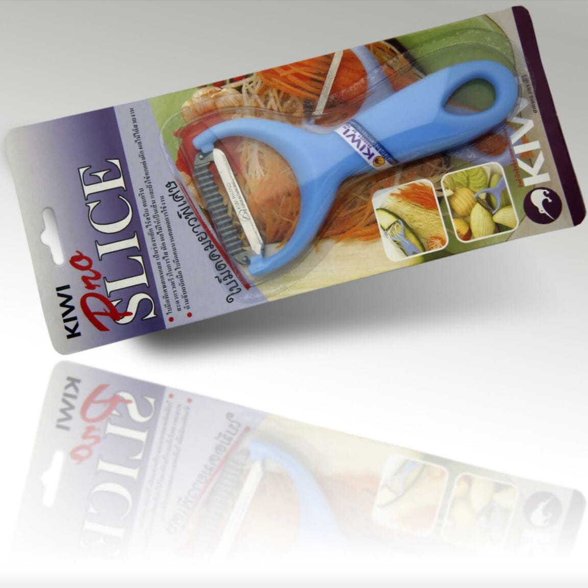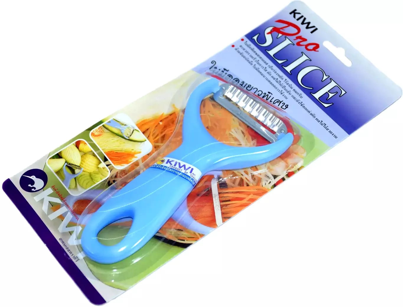 Opis: Obieraczka do warzyw i owoców tajskiej firmy KIWI. Idealne narzędzie kuchenne do obierania owoców i warzyw. Obieraczka znacznie ułatwi pocięcie marchewki, ogórka w specjalne cienkie paski, tak aby na woku czy patelni usmażyły się znacznie szybciej.