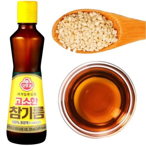 Opis: Olej sezamowy 100% koreański w butelce o pojemności 320ml wyprodukowany przez renomowaną koreańską firmę OTTOGI. Coraz bardziej popularny w amerykańskiej oraz europejskiej kuchni, ze względu na niespotykany i niepowtarzalny sezamowy smak. Znakomity do wszelkiego rodzaju sałatek, dressingów i dipów.