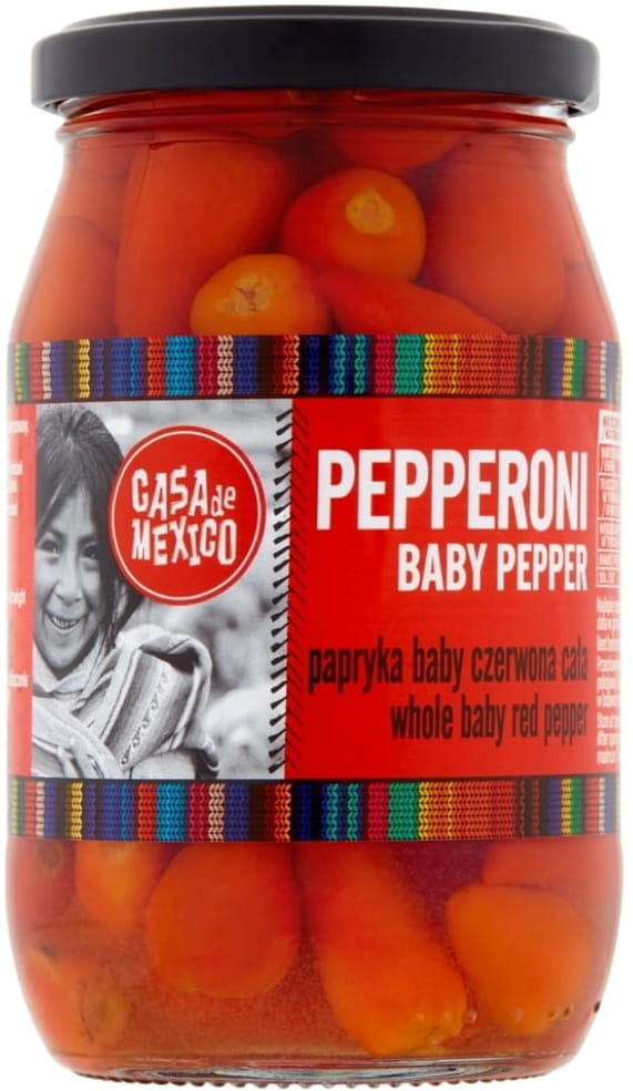Papryka Pepperoni Czerwona Baby Całe Papryczki w Zalewie 325g CASA DE MEXIC